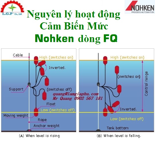Hình: Cảm Biến Phao Nohken FQ – Cảm Biến Mức Chất Lỏng dòng FQ