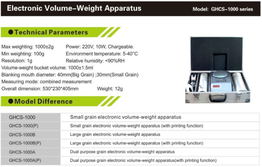 GHCS-1000 Series Electronic Grain Volume-Weight Apparatus 220V/50Hz, EU Plug